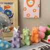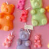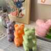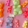 Display an array of pink and yellow gummy bears. Infuse your living space with delightful sweetness through these adorable confections. They make an ideal addition to your children’s playroom or serve as a delightful treat to satisfy your craving for something sugary.